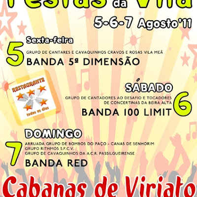 As Festas da Vila de Cabanas de Viriato vão realizar-se nos dias 5, 6 e 7 de Agosto. Têm entrada livre e contam com o seguinte programa (horário a determinar): Dia 05 (sexta-feira) – Grupo […]