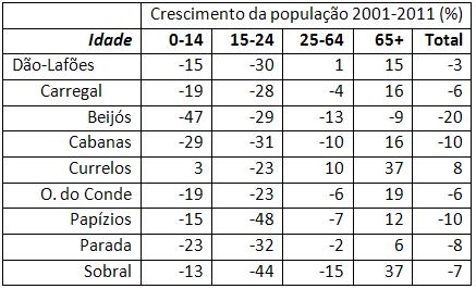 No passado dia 7, o INE publicou novos dados provisórios dos Censos 2011, ventilados por grupo etário e nível de escolaridade, desagregados ao nível de freguesia. Ao analisá-los, percebi a importância dos lares de terceira idade para a fixação de população nas freguesias envelhecidas. O concelho de Carregal do Sal perdeu, nos últimos 10 anos, 6% dos residentes. Tal como aconteceu na generalidade do território interior, apenas a freguesia sede do município registou acréscimo populacional, todas as restantes estão em regressão demográfica. No entanto, a freguesia de Beijós destaca-se por ter perdido um quinto dos seus habitantes. Não obstante Beijós ter perdido quase metade da sua população infantil e ter registado um decréscimo de população em idade activa (entre os 25 e os 64 anos) consideravelmente superior à média, o resultado mais relevante, diria até chocante, é o decréscimo de 9% na população idosa, facto irrepetível nas outras freguesias do concelho. Não tendo conhecimento de moléstia ou cataclismo responsáveis pela dizimação de velhos beijosenses, resta a hipótese da emigração – alguns juntaram-se aos filhos noutros lugares, outros residem em lares em freguesias vizinhas.