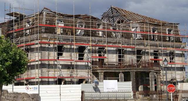 Apesar do que se perdeu quanto ao interior da casa, devido a quase 20 anos de abandono, desleixo e desinteresse de alguns, finalmente estão a fazer alguma coisa para uma recuperação. Condigna ou não, estamos para ver.